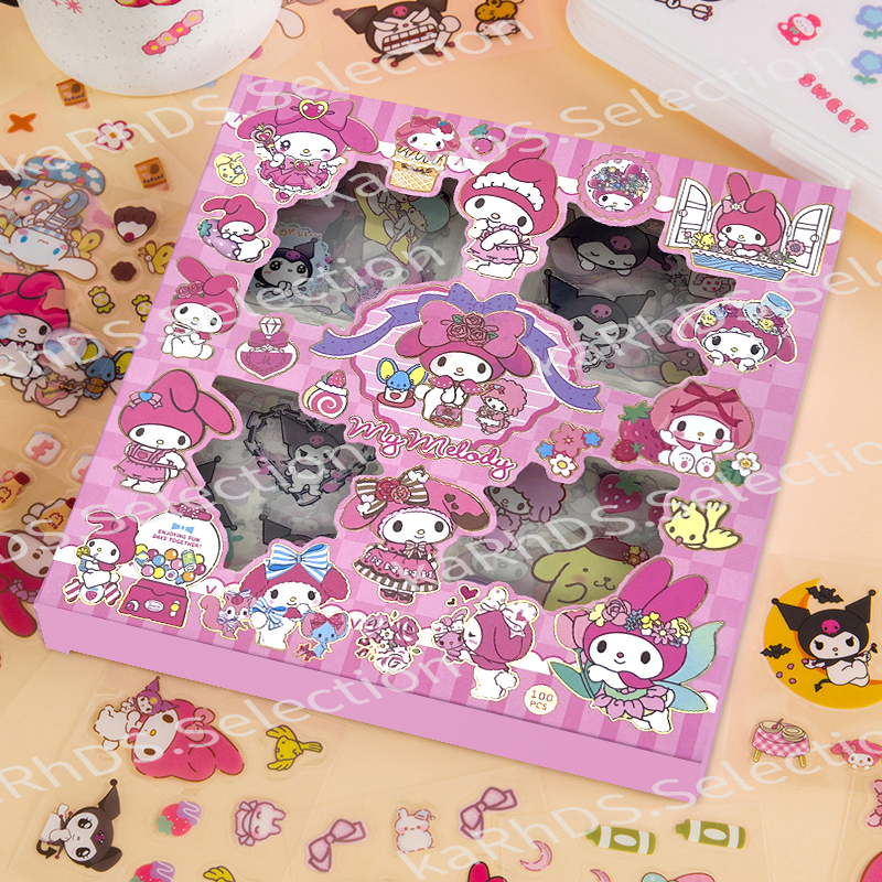 ?100pcs?sanrio kuromi sticker birthday gift cute set diy gift box cinnamoroll melody cartoon stickers box waterproof cute sticker