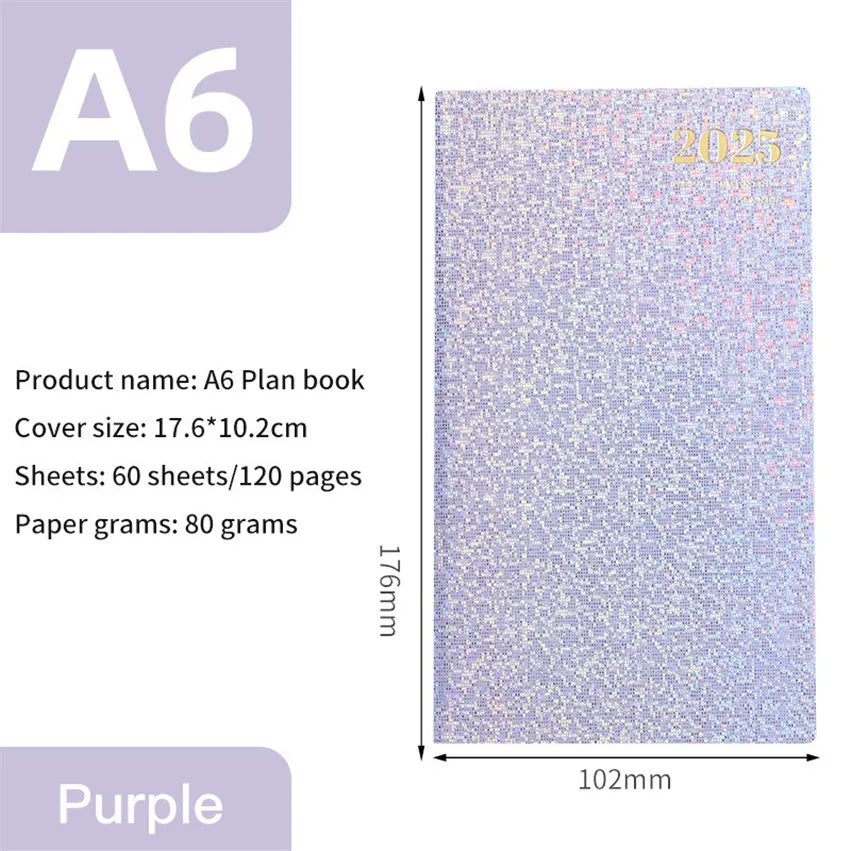 Agenda 2025 A6 Laser Diary Notebook Portable Weekly Planner 365 Daily Notepad Caderno Leather School Calendar Libreta De Apuntes2025 English...