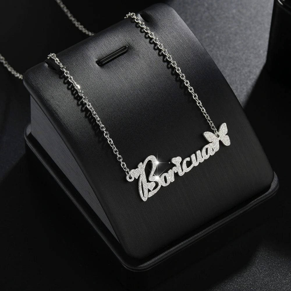 Atoztide 2022 customized stainless steel frosted name necklace butterfly personalized letter choker pendant nameplate gift