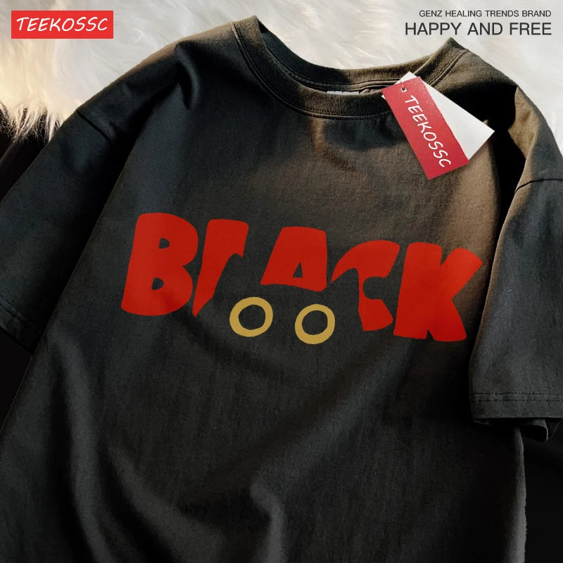 Black cat fashion brand pure cotton loose summer short sleeved t-shirt male women students street black cat couple street tees