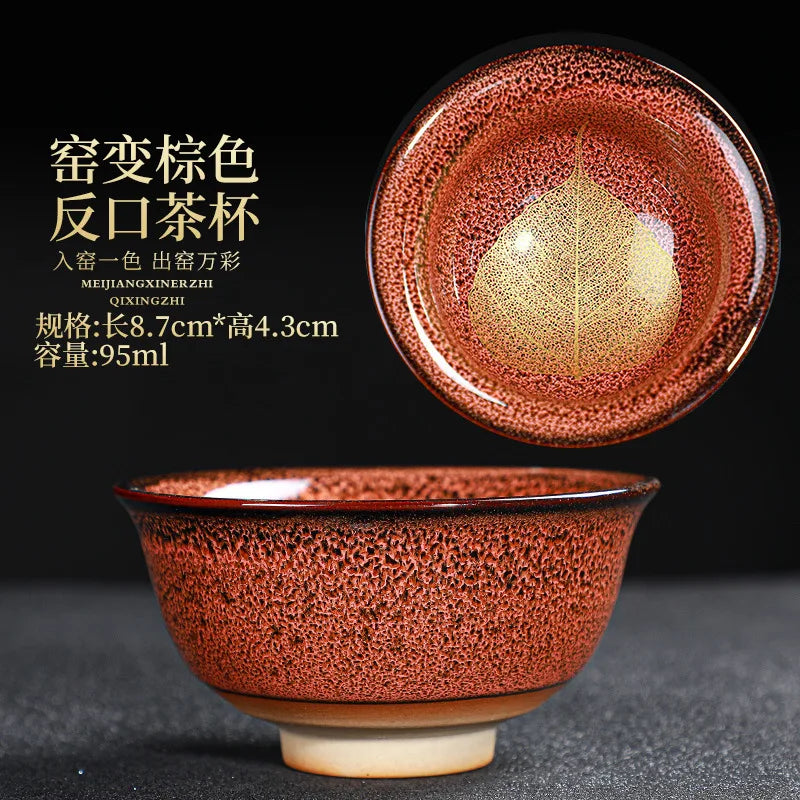 Chinese kiln change ceramic teacup handmade teaset small porcelain tea bowl leaf art tea cup tea accessories drinkware wholesale