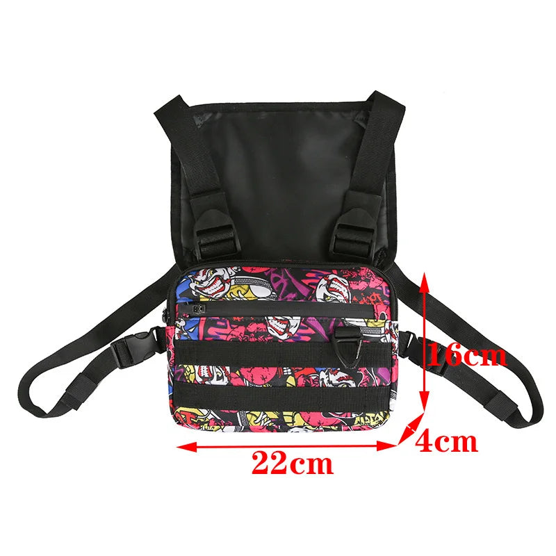 Functional tactical chest bag for men fashion bullet hip hop vest streetwear bag waist pack unisex black chest rig bag 899