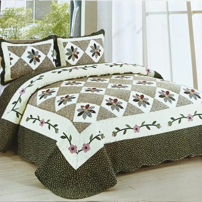 Top Fabric: 100% CottonReverse: 100% cottonFiller: 80% Cotton, 20% polyesterSizes: 1pc Quilt: 225*245cm / 88*96"2pcs Pillowcases: 50*70cm /20*27"Color: As picturesType:...