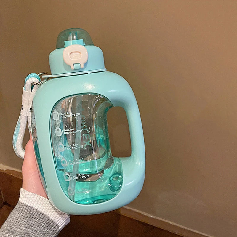 Kawaii Sport Water Bottle With 3D Stickers Straw BPA Free 1500ml Cute Large Plastic Juice Tea Gym Traval Portable Drink...
