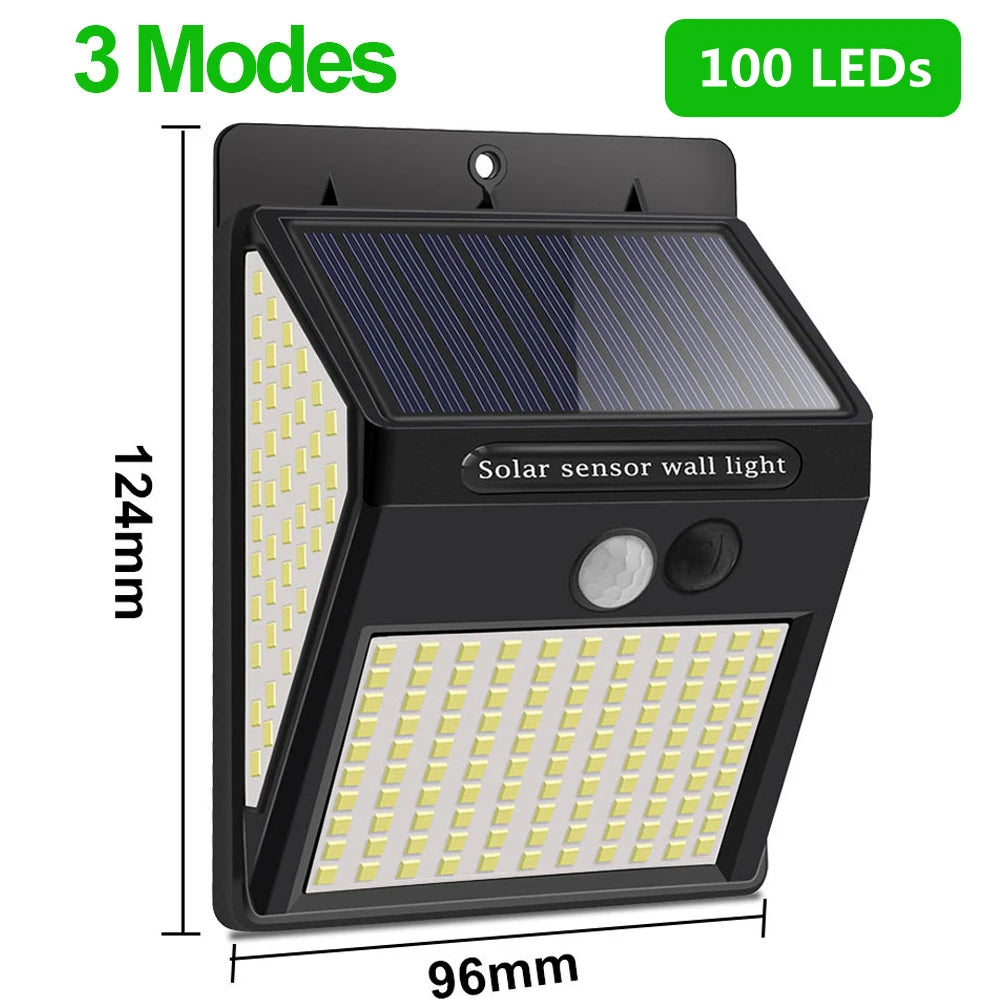 Specifications:Item Name:Outdoor Solar lightMaterial: plasticLED Quantity: 100LEDS/144LEDSColor: BlackPower consumption: 0.55WFunction: Human body inductionProduct Size: 12.4cm*9.6cm*4.8cmPackage Size: 13cm*10.5cm*5cmLight source: solarInduction distance:...
