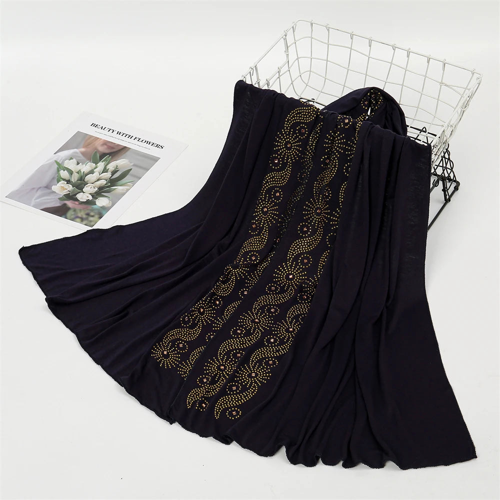 Malaysia muslim women diamonds instant hijab jersey long scarf shawl islamic arab turban scarves headwrap solid color 170*70cm