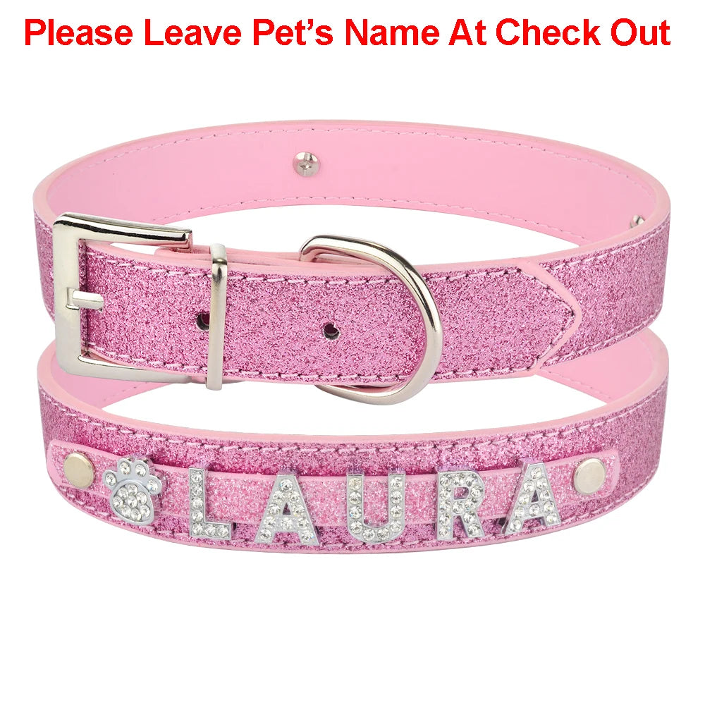 Personalized dog collar leather rhinestone bling charms custom pet dogs cat name