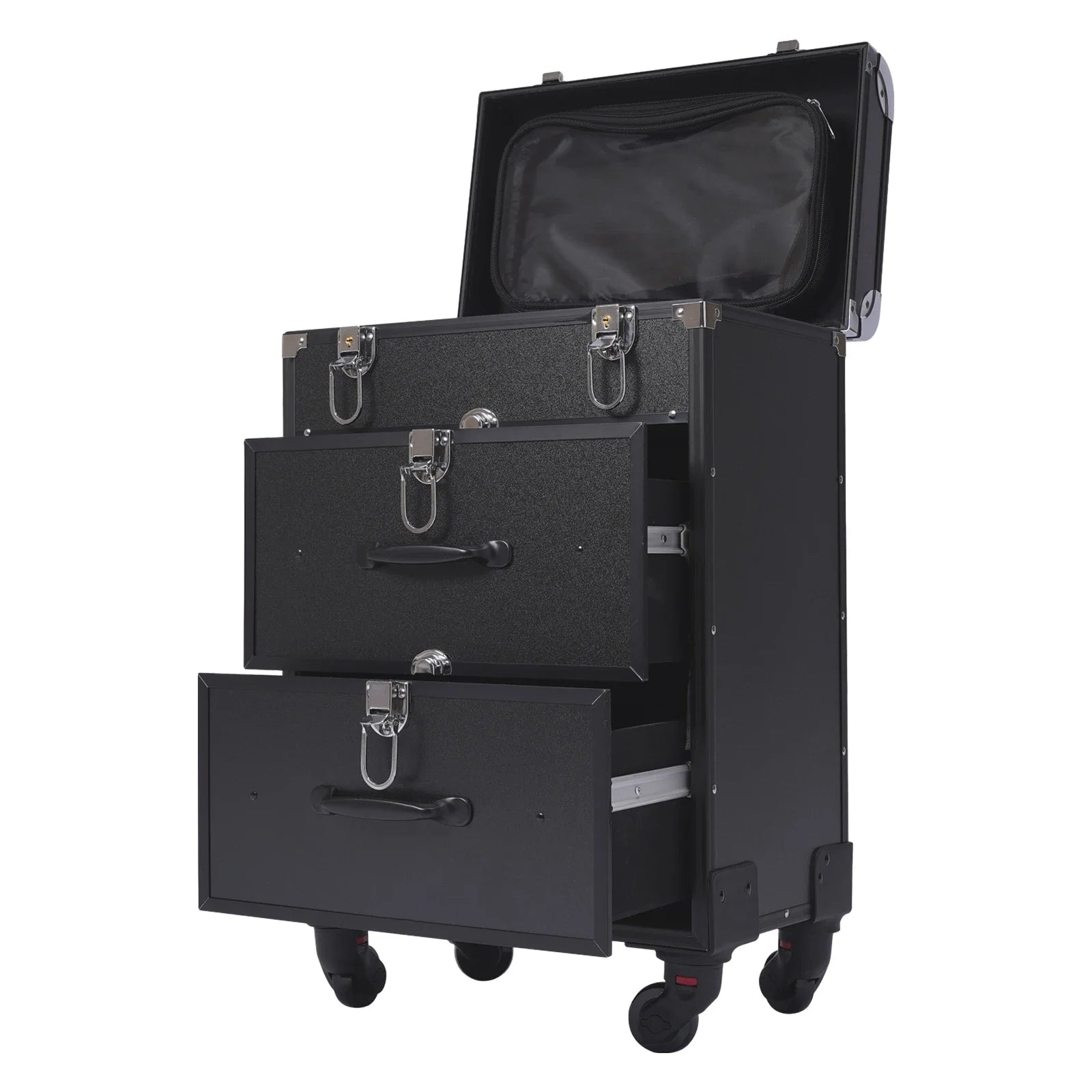 Professional rolling makeup train case multi-functional cosmetic trolley with 360° swivel wheels keys home kitchen storage box