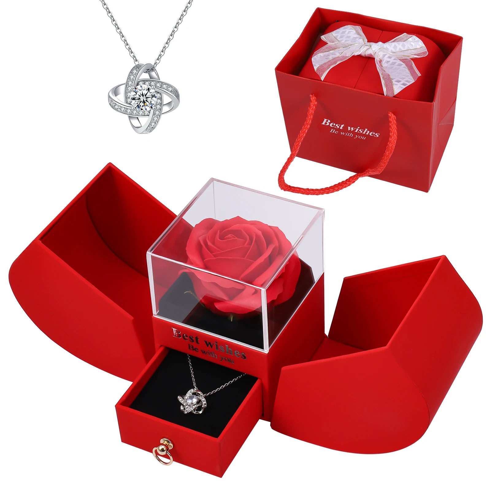 Red rose with necklace, flowers rose gifts for mom wife girlfriend, valentines day gifts, mothers day anniversary gifts for wome