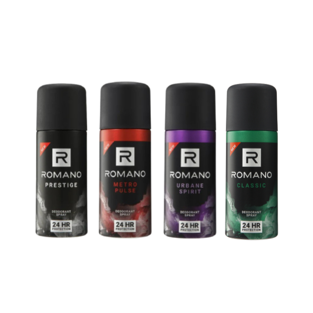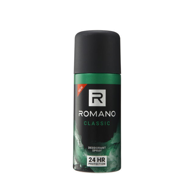 Romano Deodorant Spray 150ml Romano Deodorant Spray with its unique masculine fragrance and anti-bacterial agent provides 24 hour odor protection...