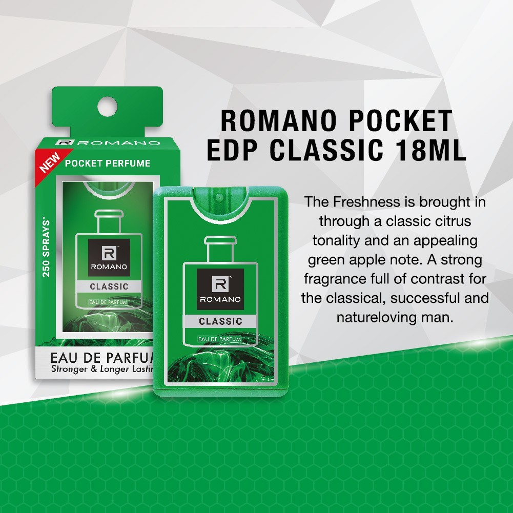 Romano Pocket Perfume EDP 18ml ROMANO Pocket Perfume EDP Force 18ML x1 A freshly clean scent that evokes invigorating and...