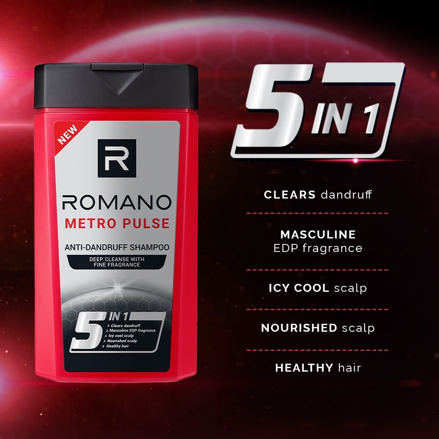 Romano Shampoo Anti Dandruff 340g Romano Shampoo Anti Dandruff Force (340g) Engineered for men, ROMANO Anti-Dandruff Shampoo with a unique...