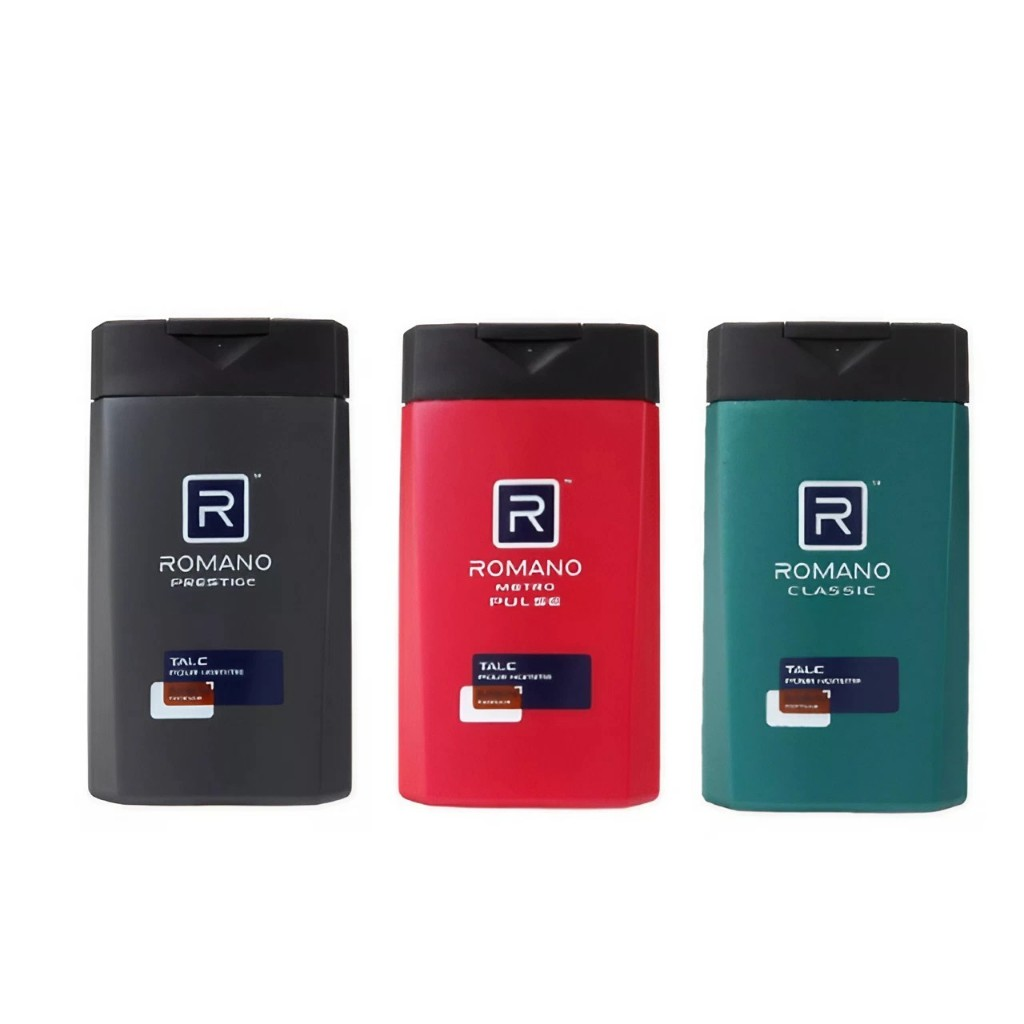 Romano Talcum Solid 125g Romano Talc Pour Homme (Prestige/Metro Pulse/ Classic) 125g 1. ROMANO Metro Pulse starts off with an...