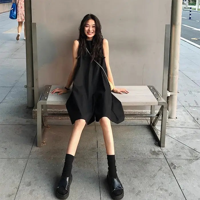 Rompers women harajuku solid trendy korean chic sleeveless clothes cargo retro o-neck preppy girls playsuits new streetwear ins