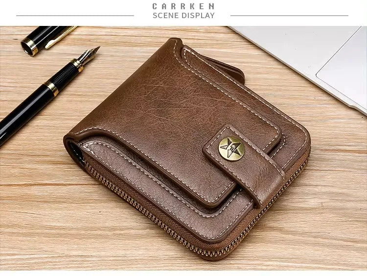 Vintage popular men's short wallets, retro trend, horizontal zipper coin purse, multi-functional card durable convenient wallets