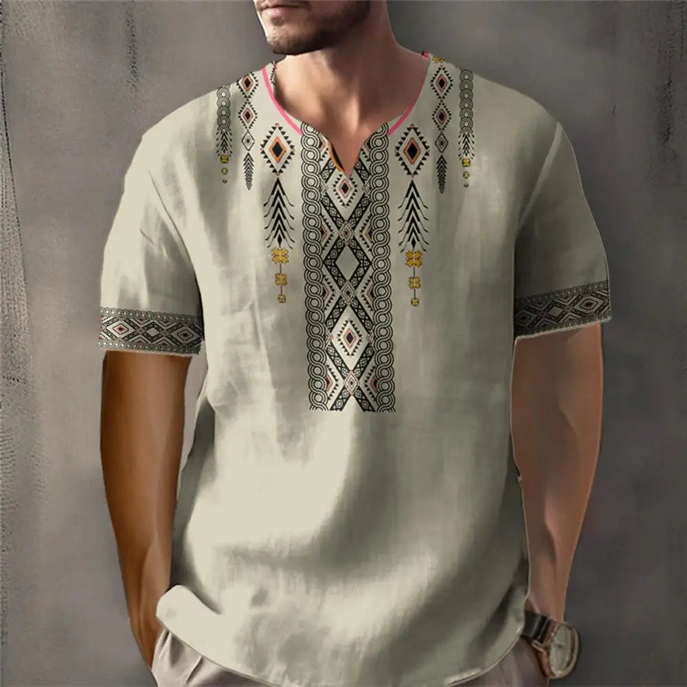 Vintage t-shirt for men african traditional ethnic style print t-shirt loose v-neck short sleeved tee oversized men clothing top