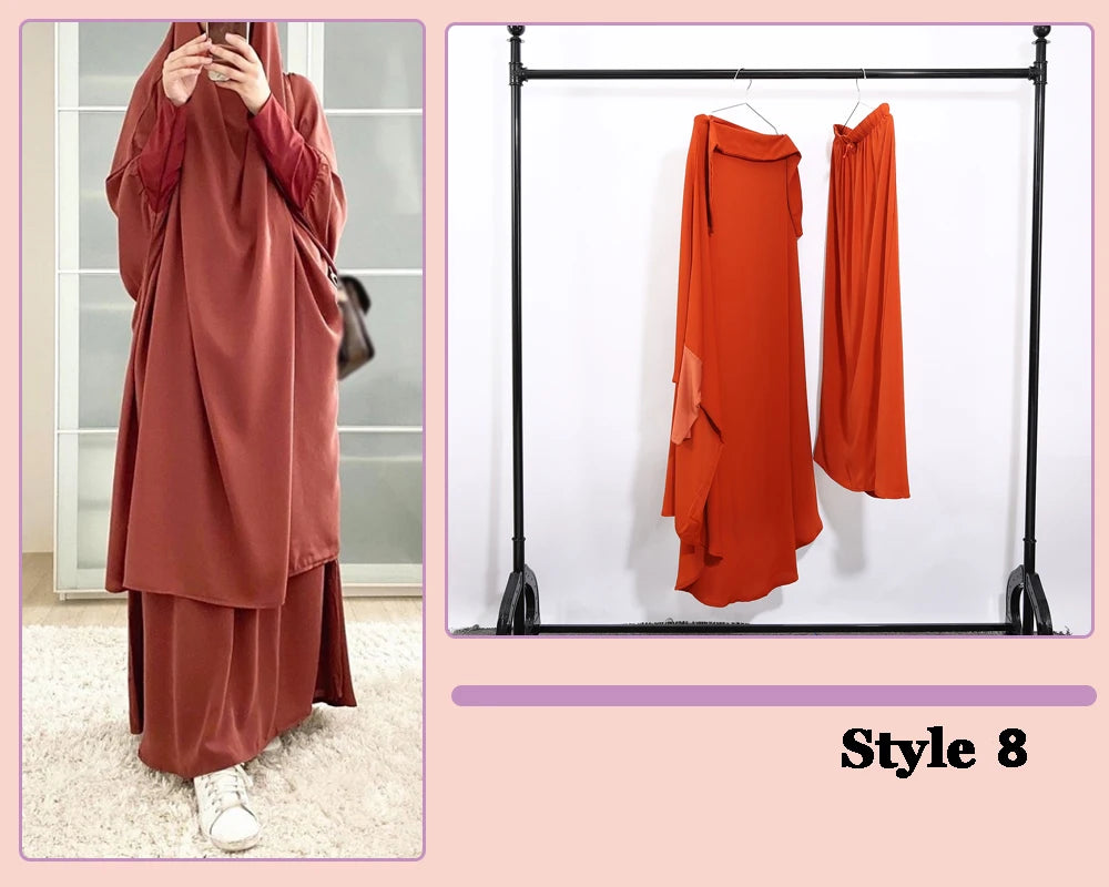 Large hem solid color robe dress hood set Muslim national costume Classic ethnic worship clothes Hooded bat long skirt, two-piece...