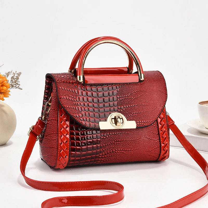 Fashion top handle satchel bag, crocodile pattern crossbody bag, women's elegant handbag, shoulder bag & purse