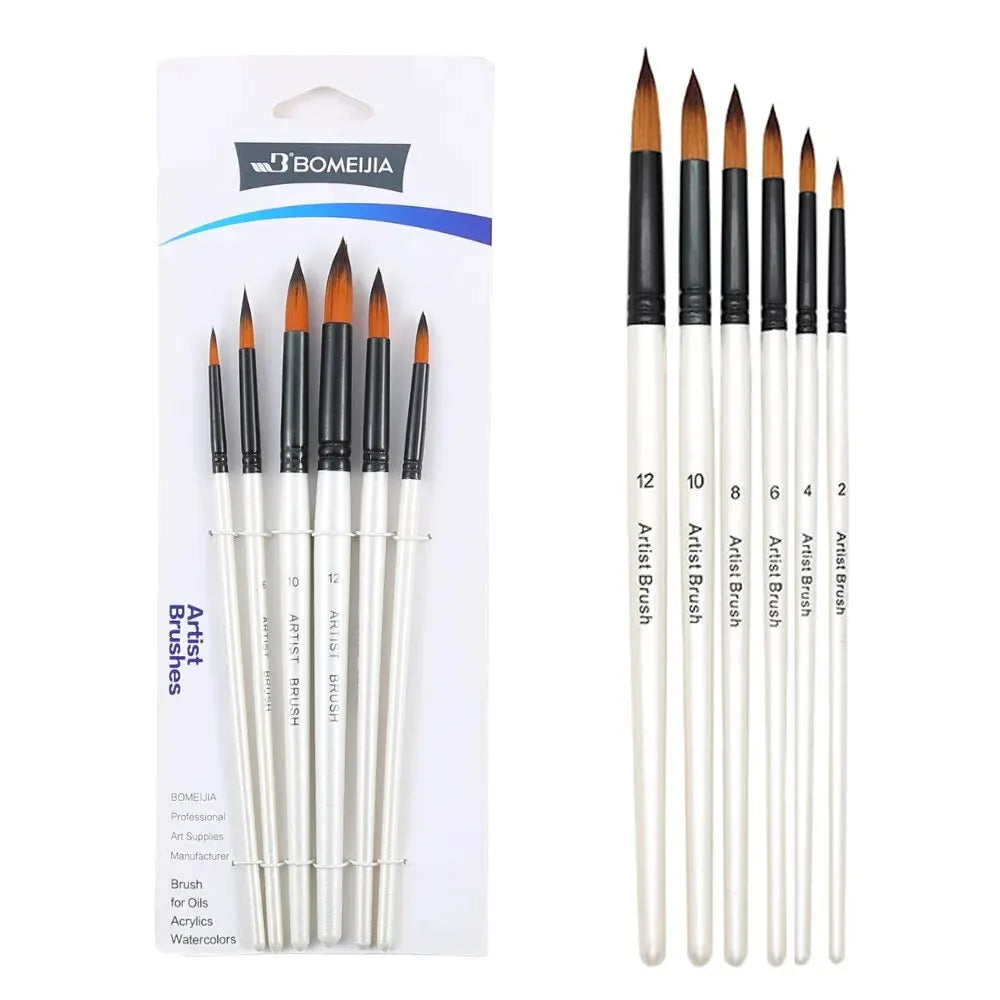 Set berus cat artis 6pcs berus cat artis untuk lukisan akrilik cat air minyak akrilik untuk kanvas batu muka badan