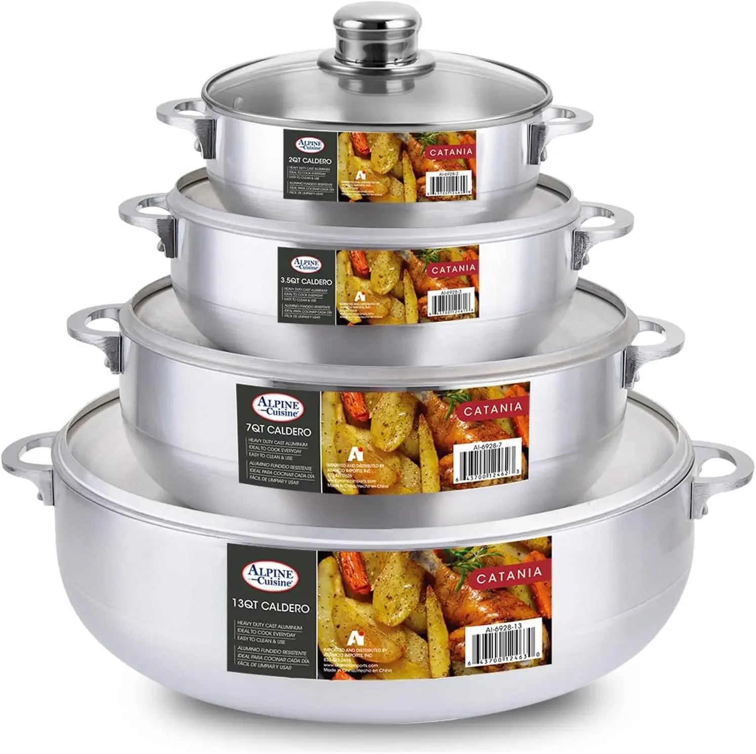 Set 8 keping masakan alpine periuk stok aluminium caldero, ketuhar belanda memasak gred komersial