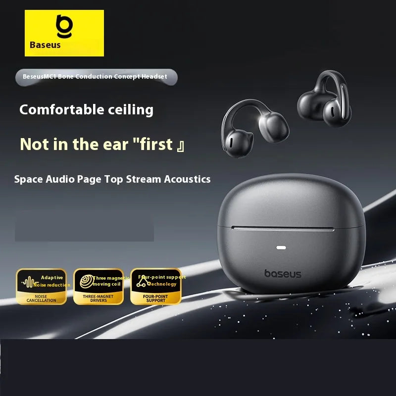 BASEUS MC1 Fon Telinga Bluetooth Wayarles Pengaliran Tulang Udara Klip Telinga Kalis Air Sukan Permainan Larian Fon Telinga Terbuka Tersuai...