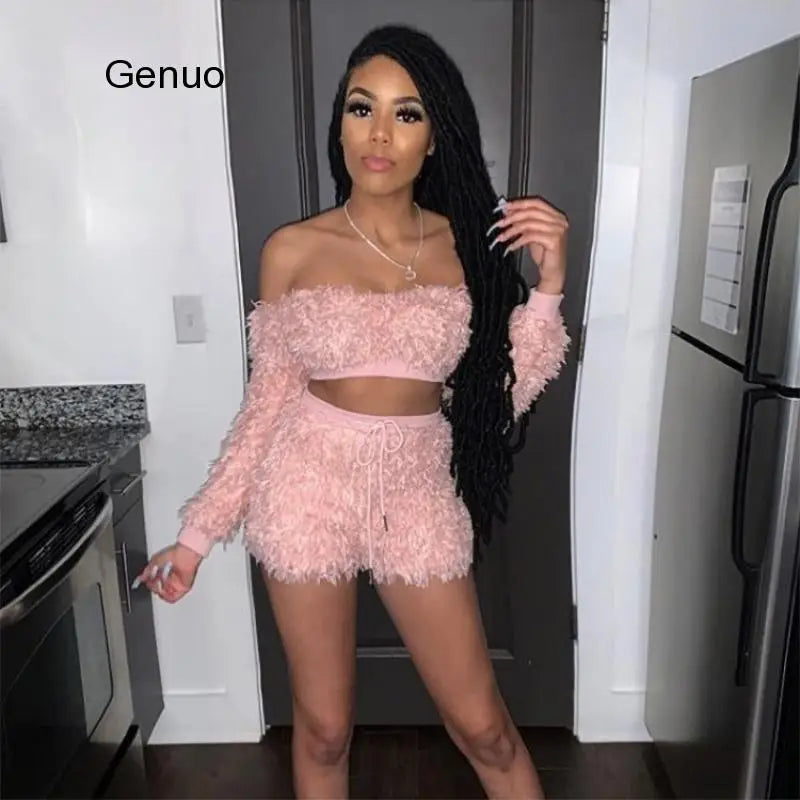 Pakaian merah jambu kelab seksi musim panas kasual set dua keping atasan tanaman atasan wanita dan set seluar pendek 2 helai set padanan wanita 2020