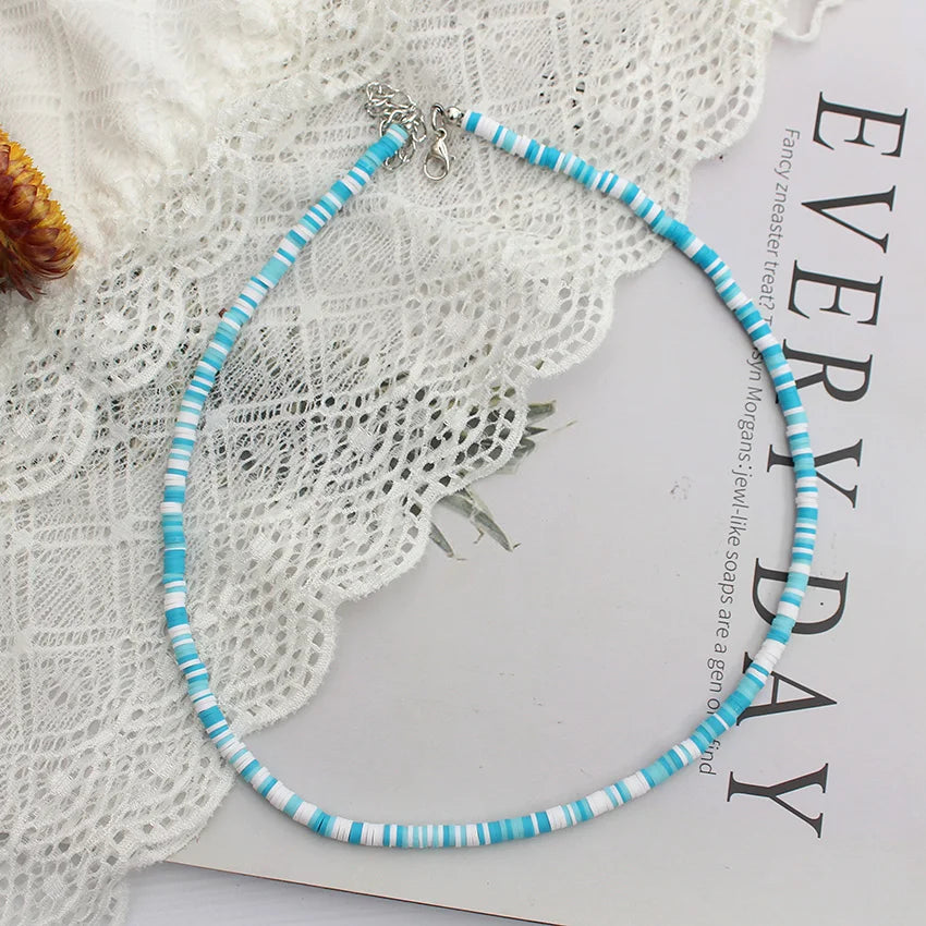 Kalung manik berwarna-warni wanita musim panas korea buatan tangan fesyen boho polimer tanah liat choker loket leher kolar barang kemas pantai wanita
