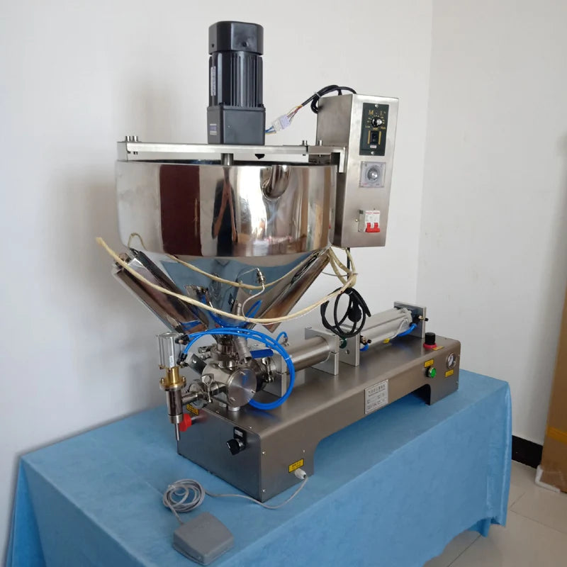Piston komersial pneumatik kepala tunggal kawalan kaki mengisi mesin keluli tahan karat pemanasan kacau jenis mesin mengisi