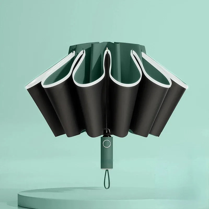 Payung lipat songsang automatik sepenuhnya dengan payung uv jalur reflektif kalis angin