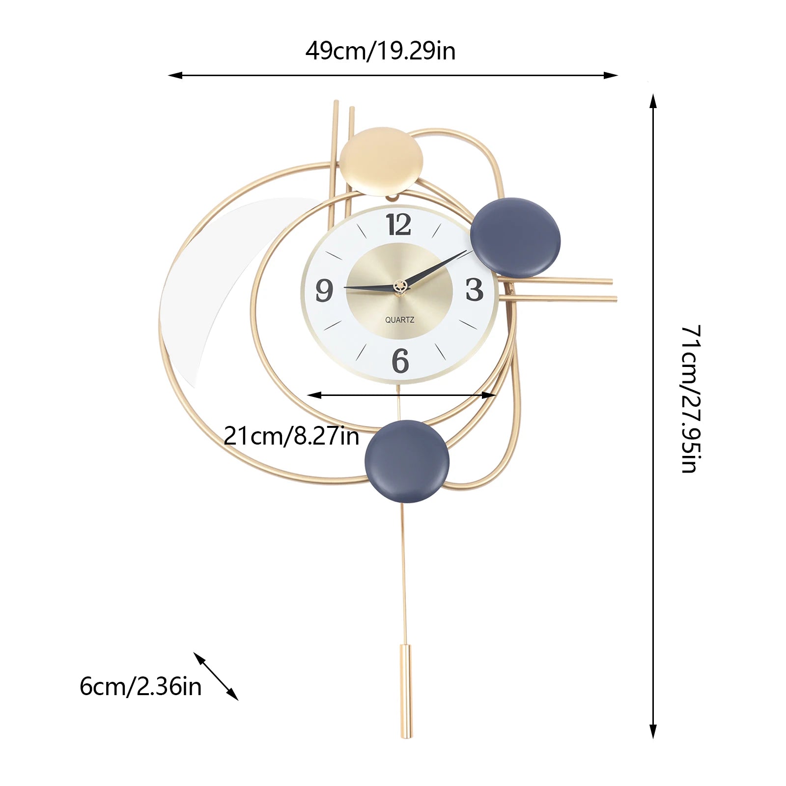Penerangan Jam Dinding Moden 3D Jam Dinding Buaian Senyap Hiasan Ruang Tamu Kreatif Emas Apa yang Termasuk? 1x Jam Dinding...