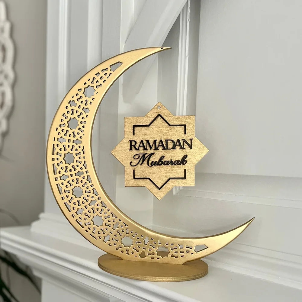 Hiasan islam hadiah hari raya hiasan meja ramadhan bulan sabit kayu bulan ramadan