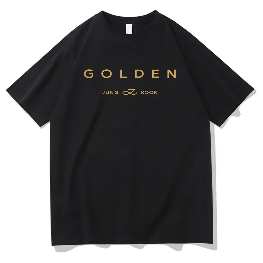Kemeja-t emas jungkook baru fesyen wanita bercetak huruf corak harajuku baju-t kasual berkualiti tinggi korea