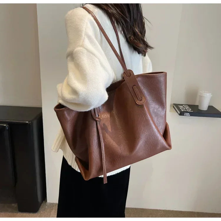 Beg tote bahu bahu berkapasiti besar fesyen ringkas beg penyimpanan luar beg beli-belah bekalan perabot