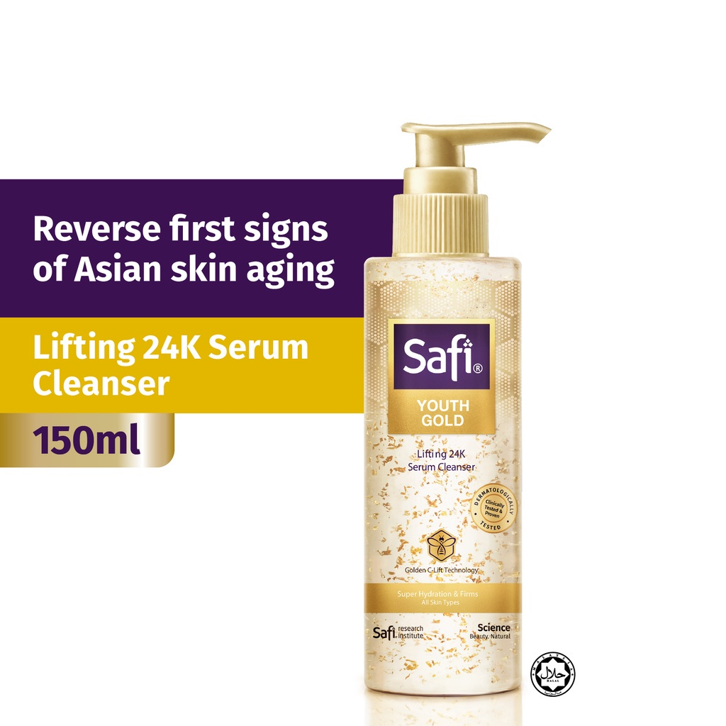 Safi Youth Gold Lifting 24K Serum Cleanser 150ml Pembersih yang diselitkan serum emas 24K yang lembut dan menegangkan dengan bahan...