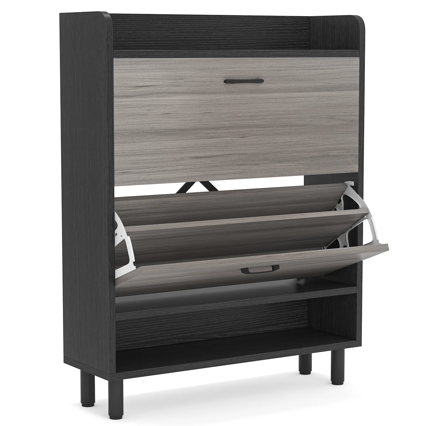 Kabinet kasut tribesigns, kabinet penyimpanan kasut 2 tingkat dengan pintu balik, rak penyusun kasut pintu masuk vintaj dengan rak terbuka