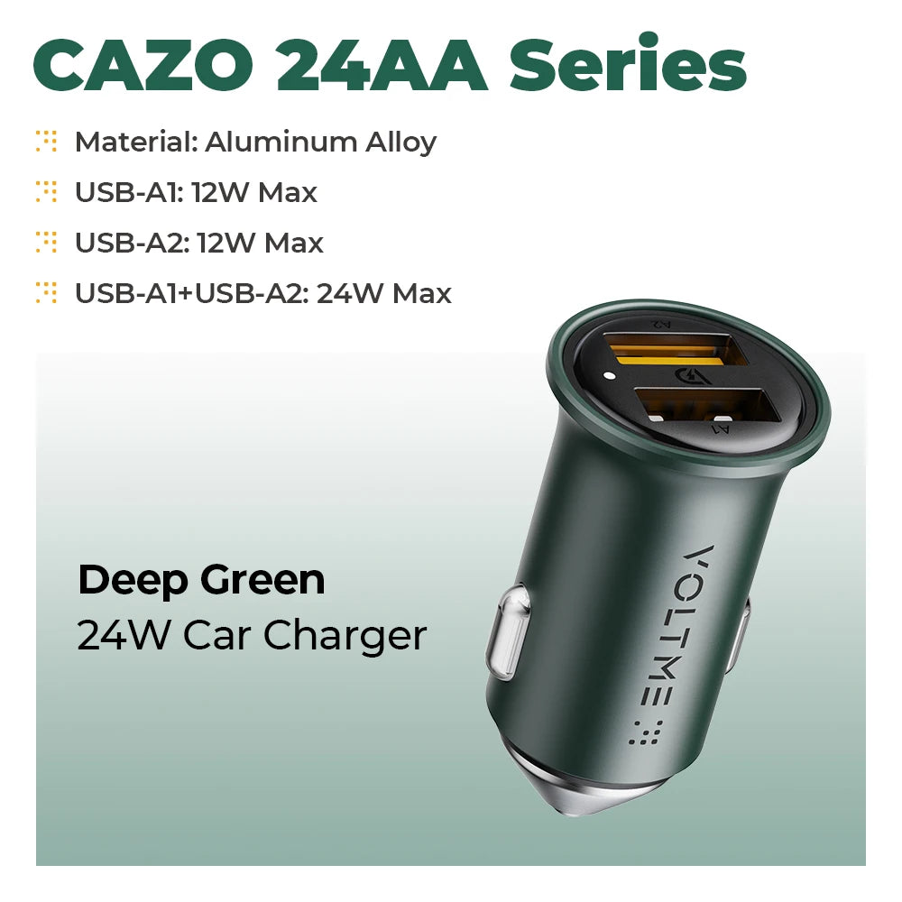 Pengecas kereta dual usb voltme 24w aloi aluminium mini dengan led biru untuk iphone 14 13 12 pro max pengecasan pantas dalam pengecas kereta