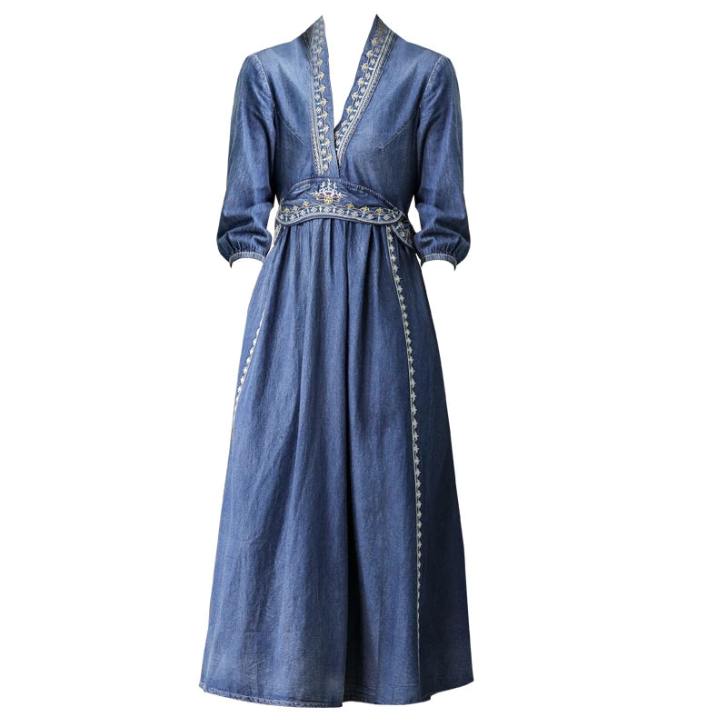 Tiyihailey penghantaran percuma 2022 fesyen separuh lengan panjang denim tengah betis wanita gaun sulaman v-leher vintaj s-xl berkualiti tinggi