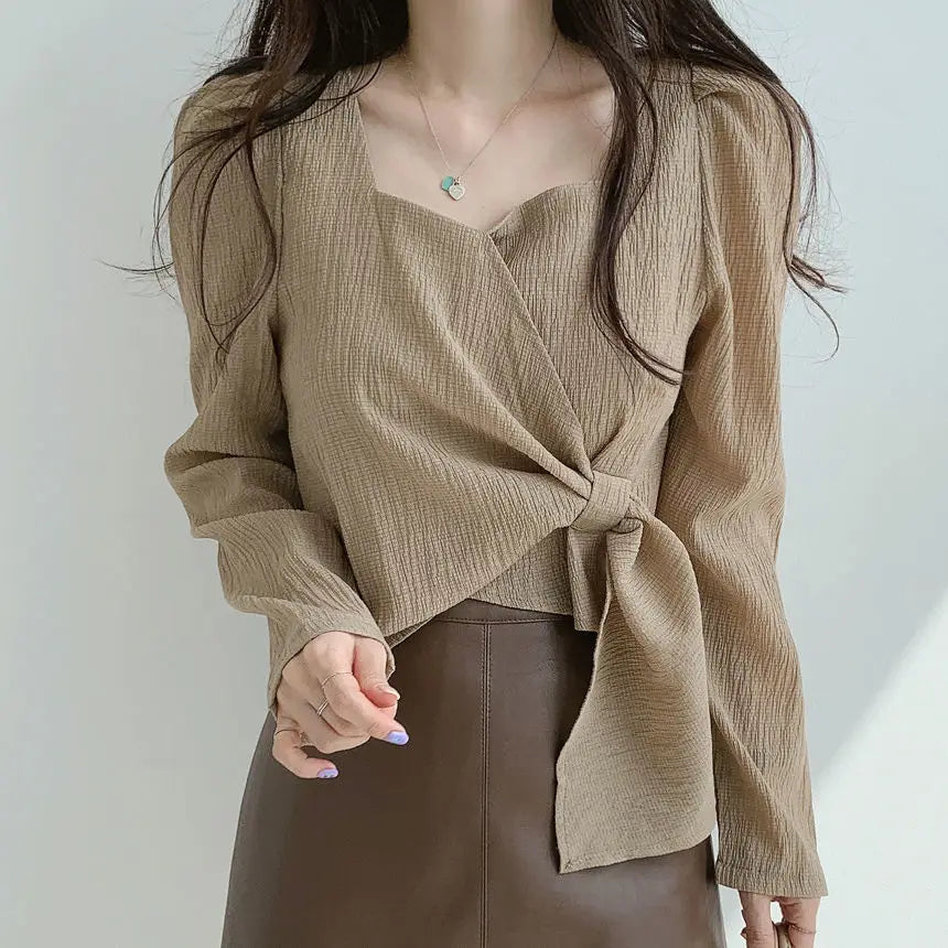 Baju atasan untuk wanita pakaian sosial elegan gaya korea baju & blaus wanita musim bunga lengan panjang putih bergaya pakaian jalanan s cukup comel