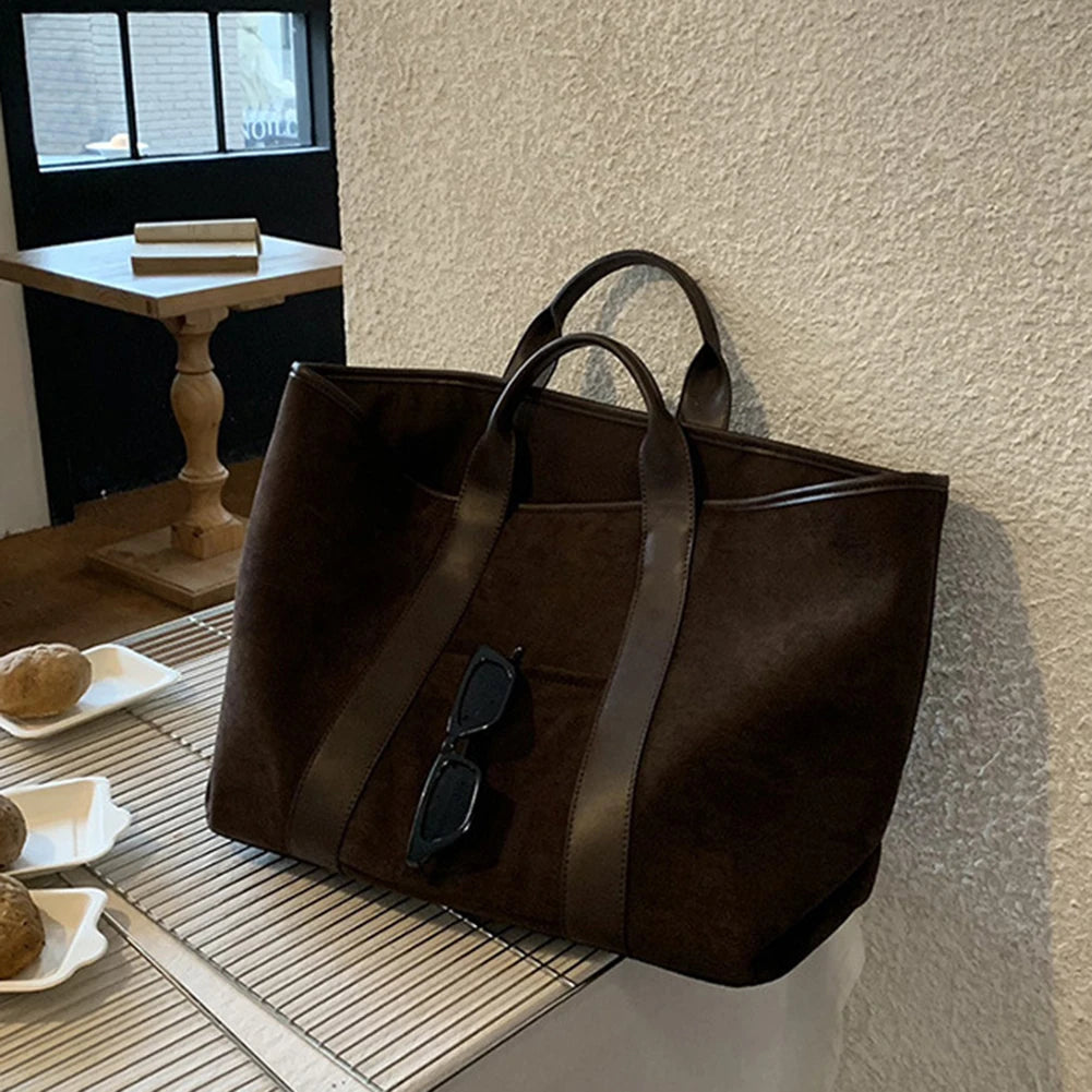 Beg tangan musim sejuk untuk wanita beg beg beg berkapasiti besar suede beg beli-belah beg perjalanan mudah vintaj