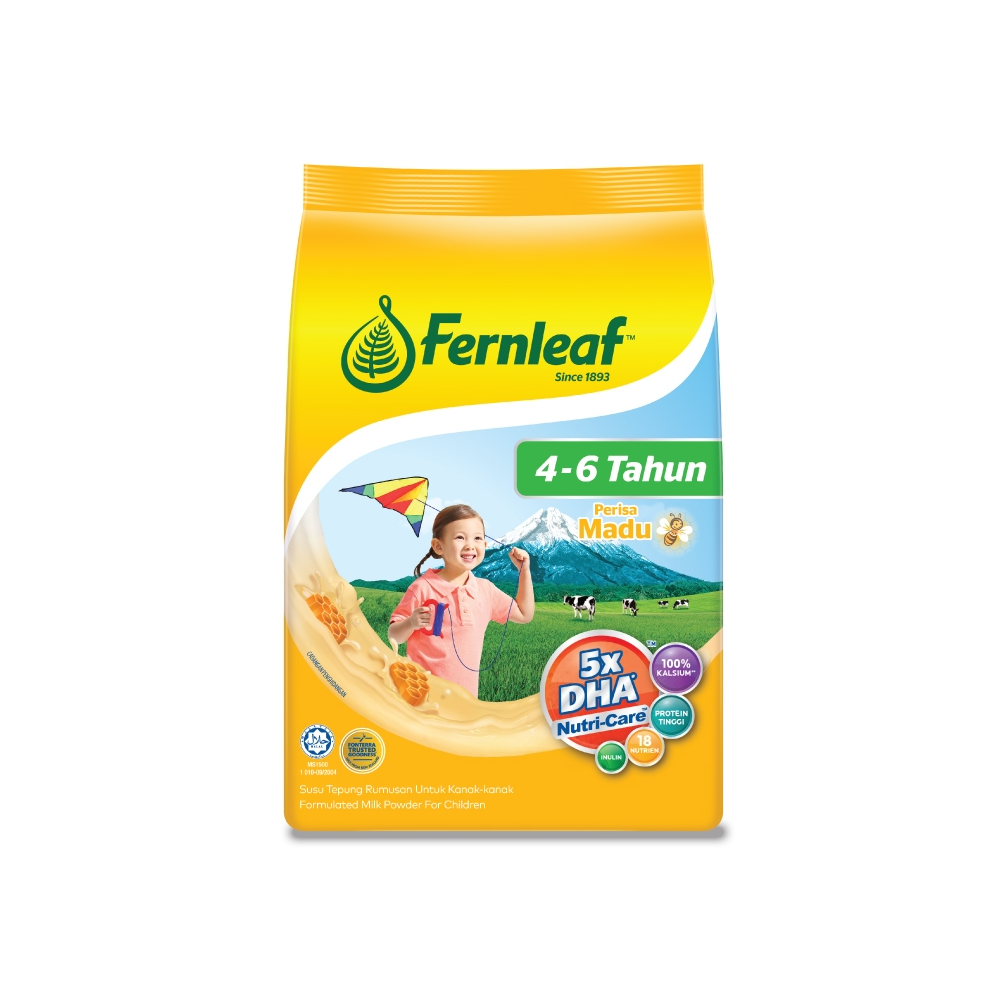 Susu Tepung Fernleaf untuk Kanak-kanak 4 - 6 tahun Susu Tepung Formulasi Fernleaf untuk Kanak-kanak mengandungi nutrien penting untuk menyokong...
