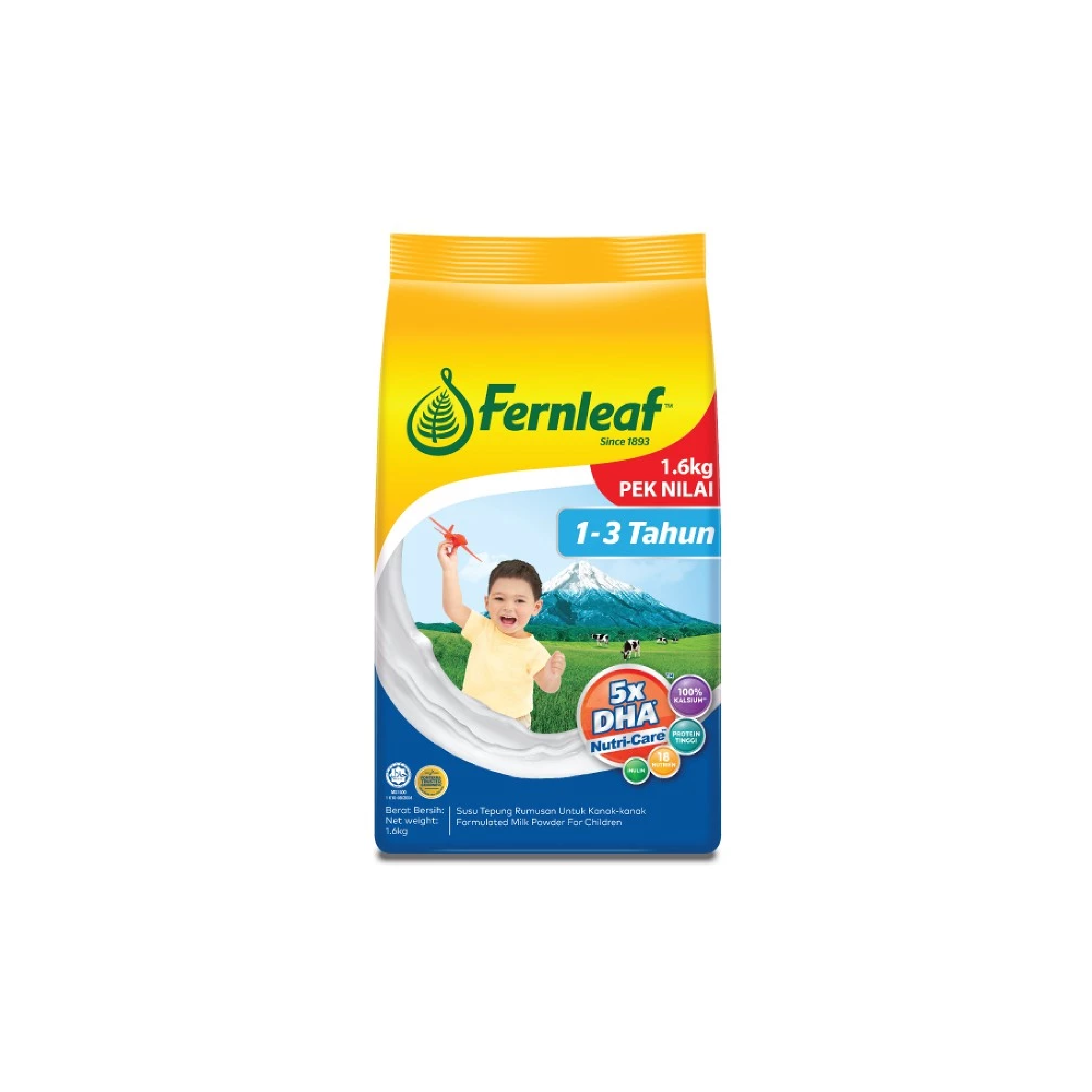 Susu Tepung Fernleaf untuk Kanak-kanak 1 - 3 tahun Susu Tepung Formulasi Fernleaf untuk Kanak-kanak mengandungi nutrien penting untuk menyokong...