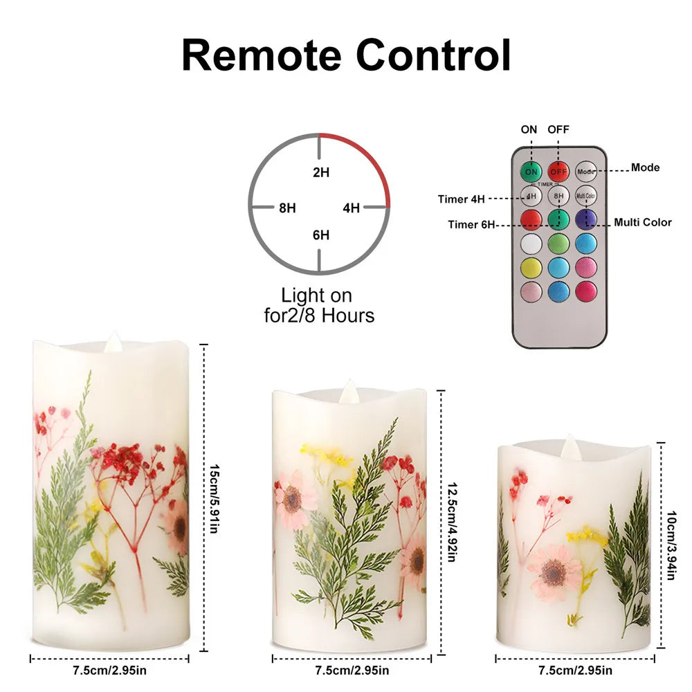 3pcs led electronic candle set flameless dried flower candle dengan remote control night light untuk hiasan perkahwinan pesta percutian