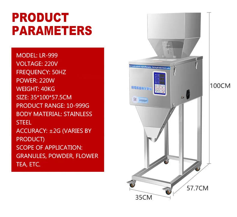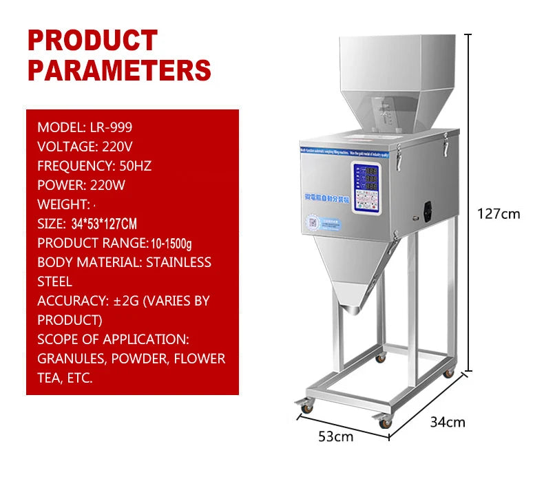 Mesin Pengisian Zarah Serbuk Kuantitatif Besar 220V Beras Kopi Teh Pelbagai Fungsi Mesin Pintar Berkapasiti Besar