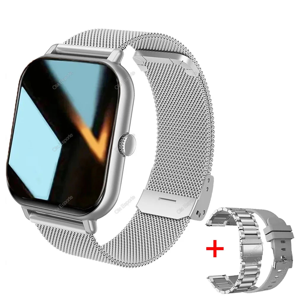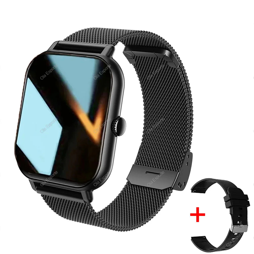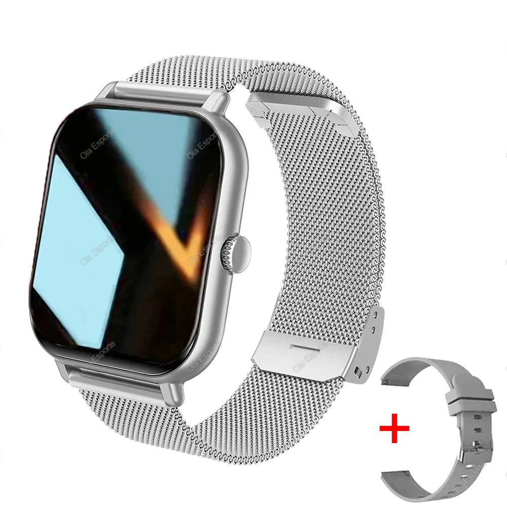 +2pc Tali Jam Pintar Wanita Lelaki Jam Pintar 1.44'' Panggilan Dail Persegi BT Music Smartclock Untuk Jam Tangan Penjejak Kecergasan Android IOS