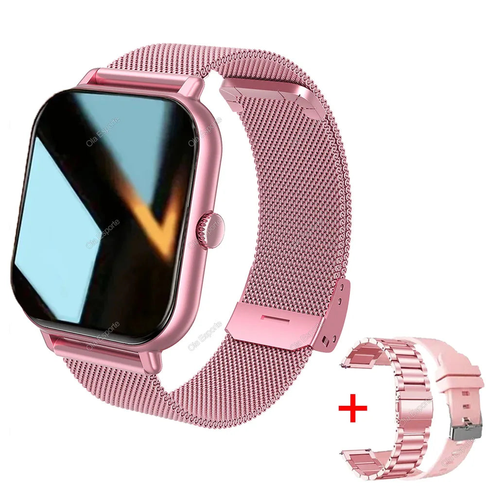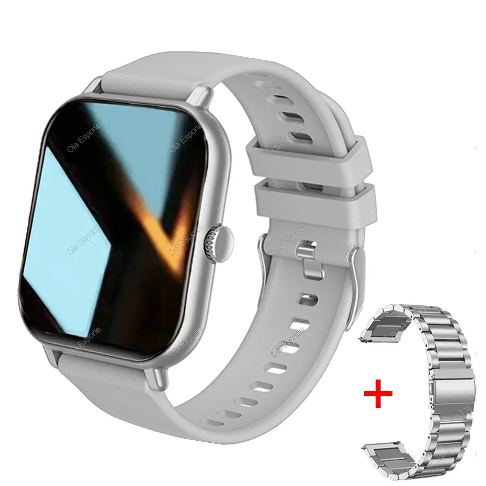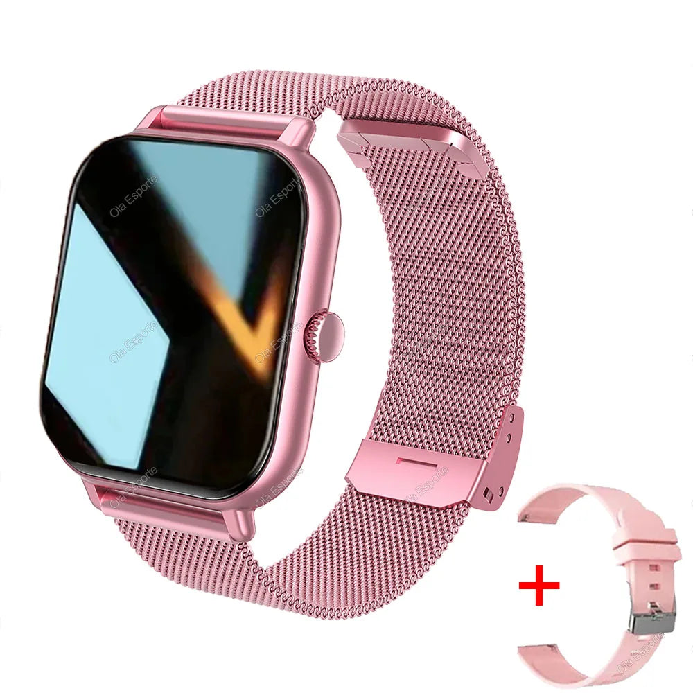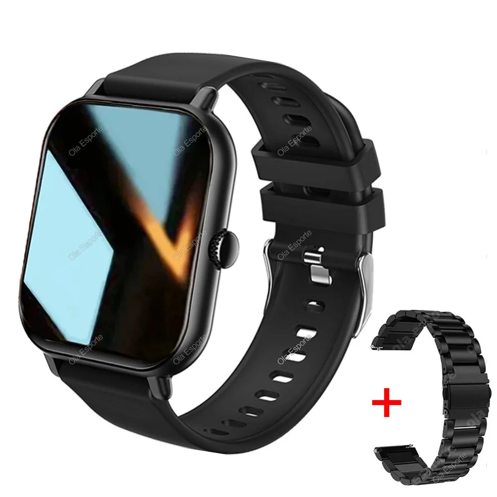 +2pc Tali Jam Pintar Wanita Lelaki Jam Pintar 1.44'' Panggilan Dail Persegi BT Music Smartclock Untuk Jam Tangan Penjejak Kecergasan Android IOS