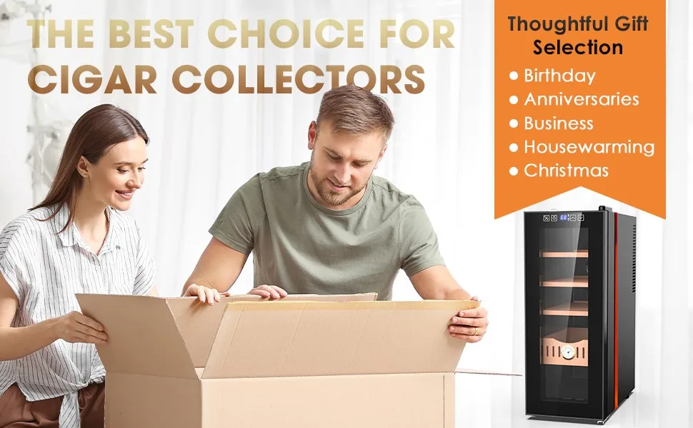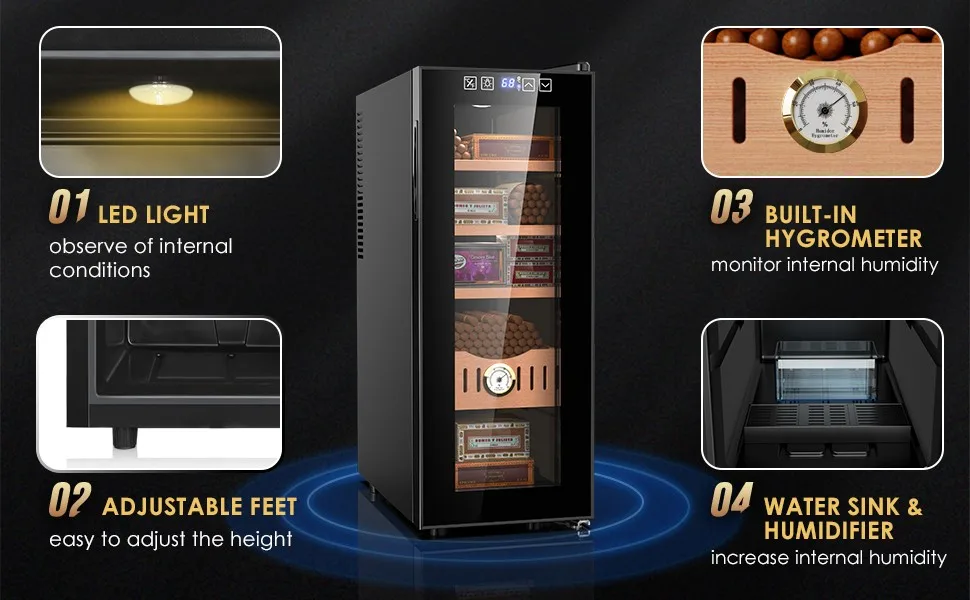 Kabinet Humidor Cerutu Elektrik 35L untuk 250 Kiraan, Kawalan Suhu Penyejukan & Pemanasan, dengan Rak Kayu Cedar Sepanyol