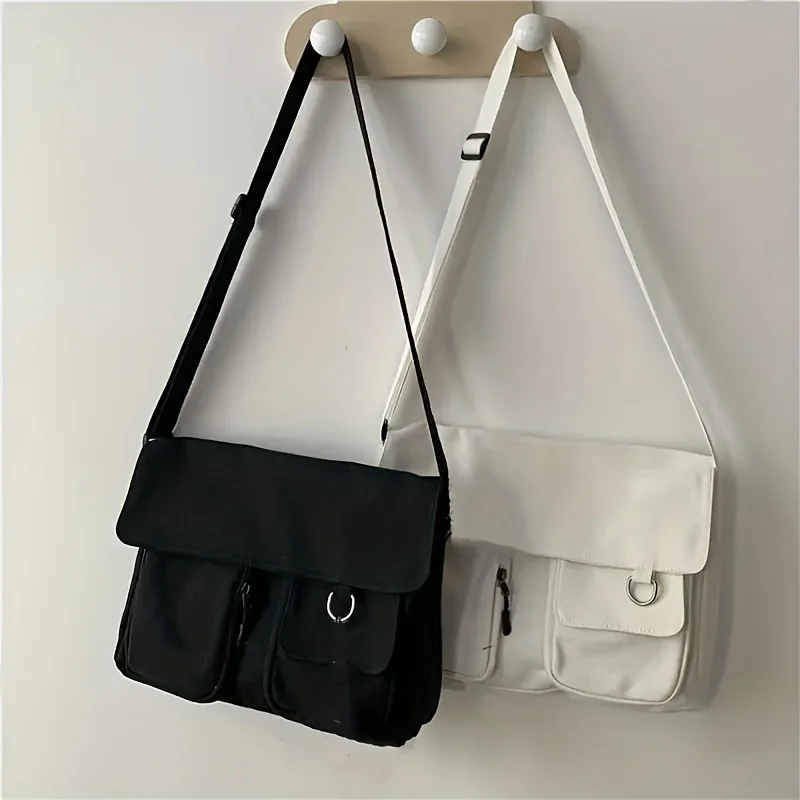 Beg Kepak Bahu Kanvas Ringkas Beg Tote Tangan Kapasiti Besar Gancu Beg Beg Beg