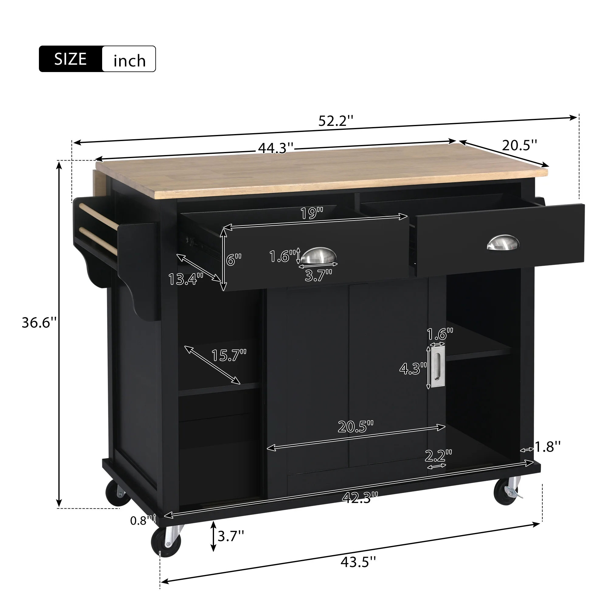 Troli Dapur dengan Kaunter Daun Jatuh Kayu Getah, Pintu bangsal gelongsor tersembunyi ketinggian boleh laras, Pulau Dapur di atas 4 Roda