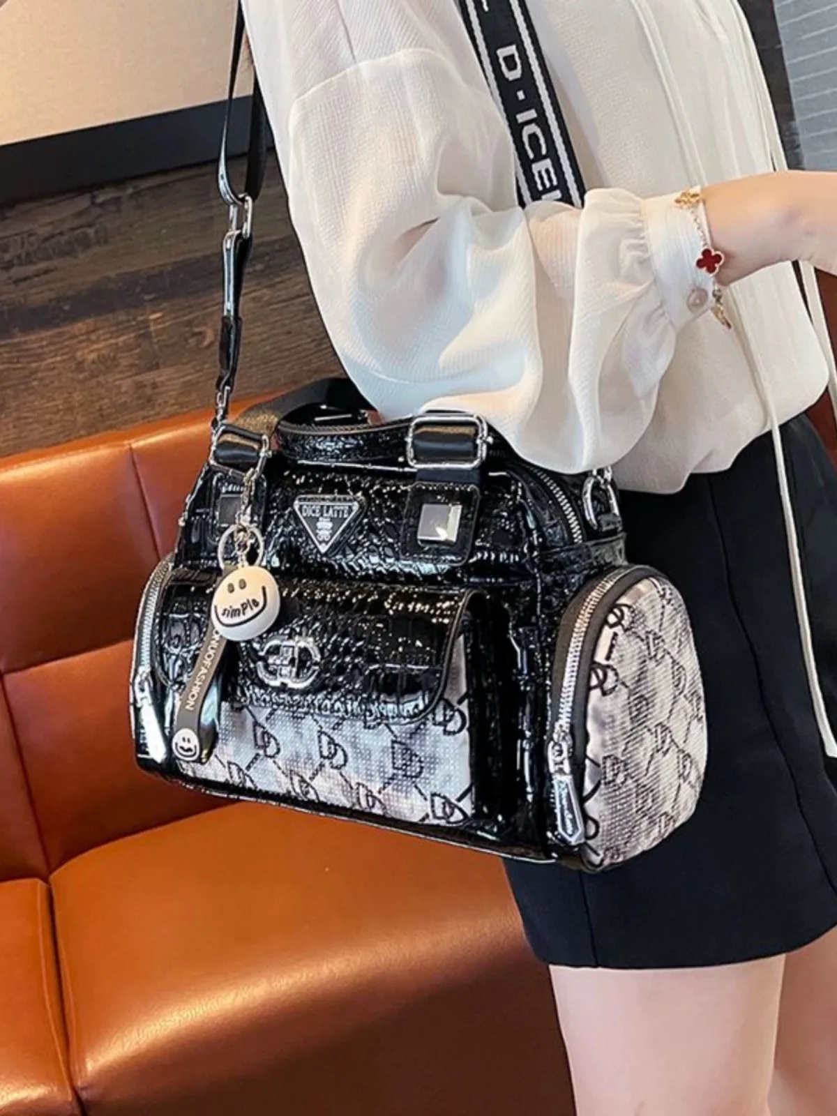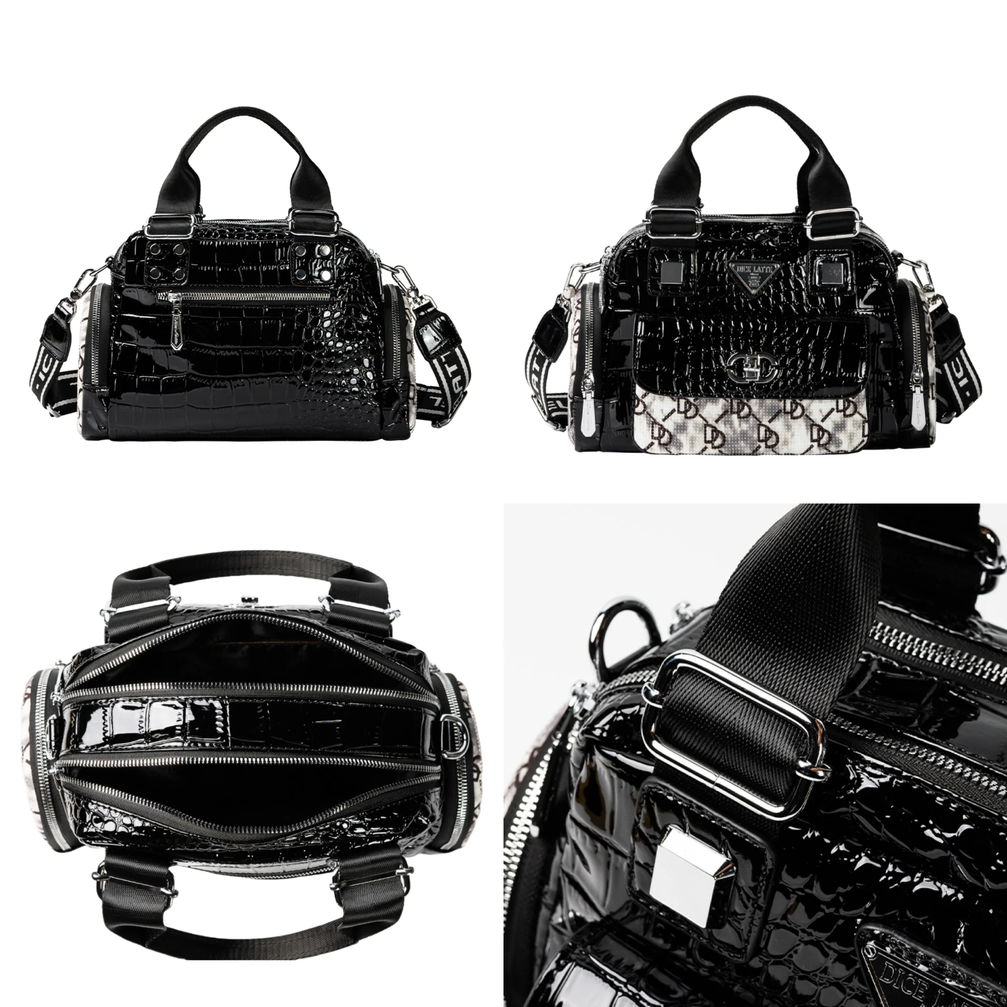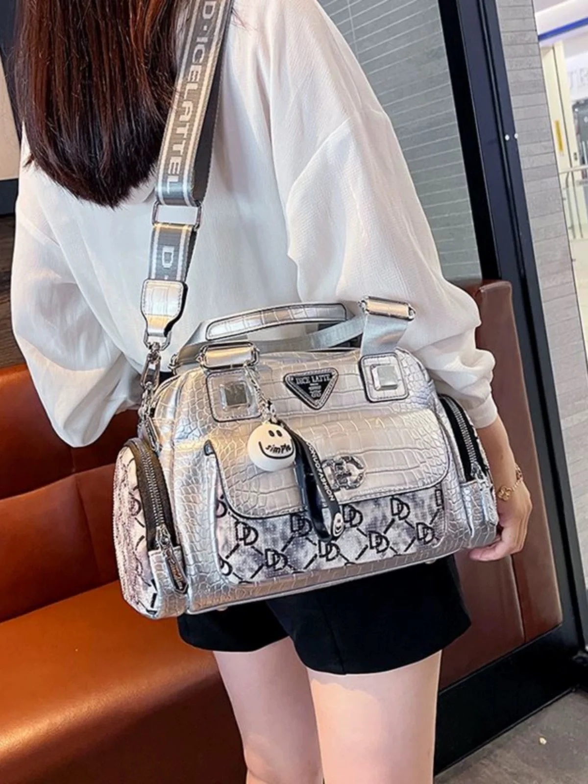 Beg Tangan Boston Glamour Besar - Beg Crocodile Crossbody yang Luas Dengan Penutupan Zip, Berbilang poket dan Pemegang Selesa