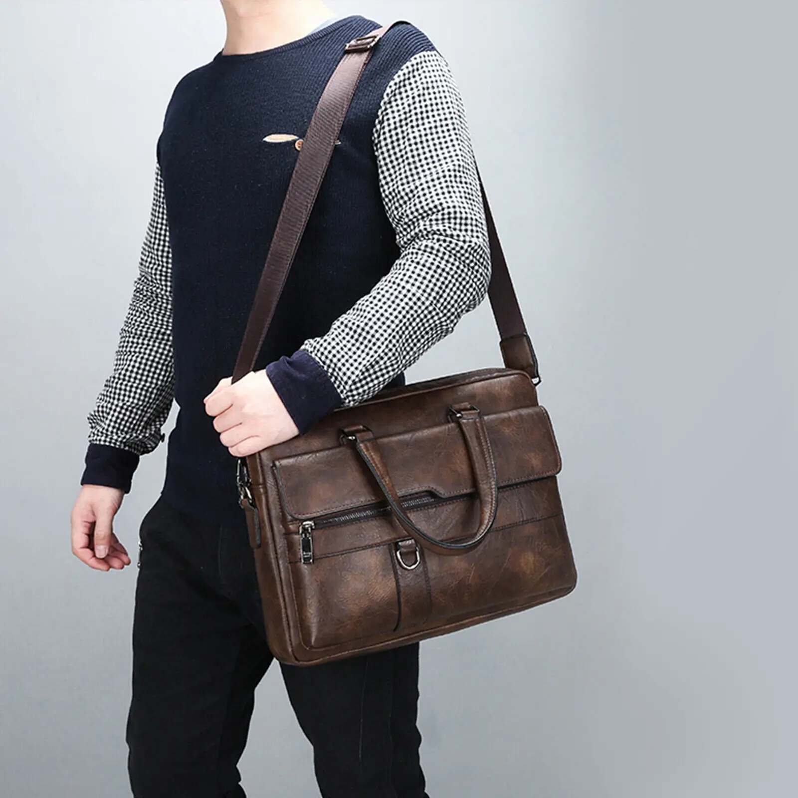 Jenama Mewah Lelaki Beg Briefcase Untuk Lelaki Beg Bahu Perniagaan PU Kulit Messenger Beg Lelaki A4 Beg Tangan Pejabat Beg Komputer Riba Tote Lelaki
